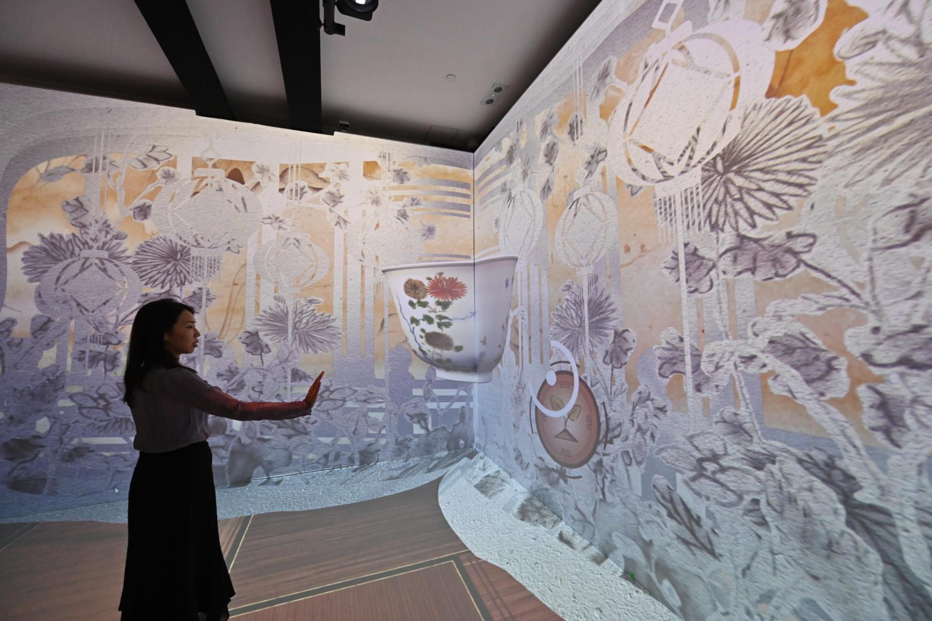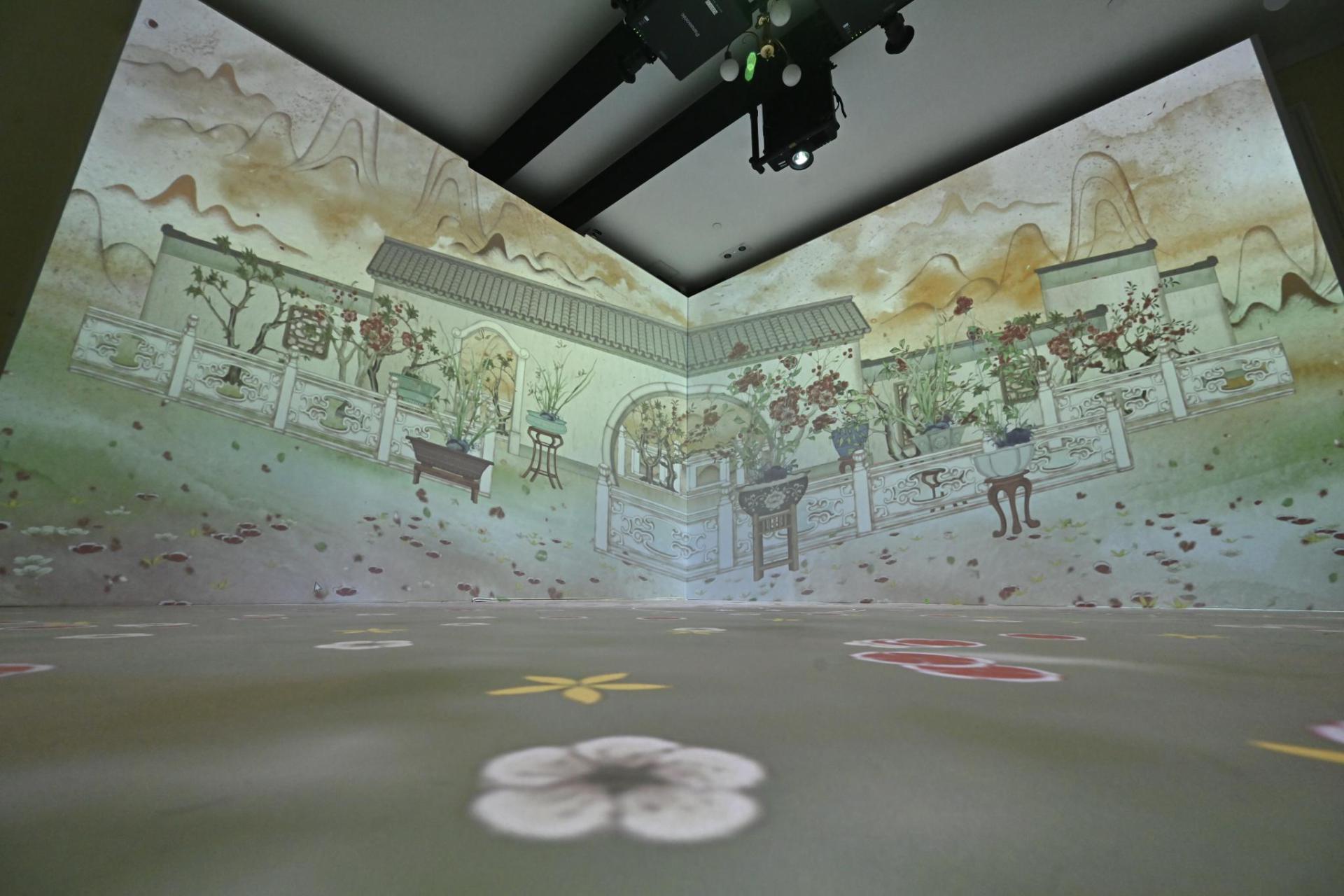茶具文物館同時邀請藝術(shù)家團(tuán)隊DBIS,將館藏的五彩十二花神杯融入互動裝置《四時庭園》中,透過藝術(shù)與科技結(jié)合,觀眾可與花神杯互動,配合自身的肢體動作引導(dǎo)花神生長,孕育一個充滿活力的虛擬花園。