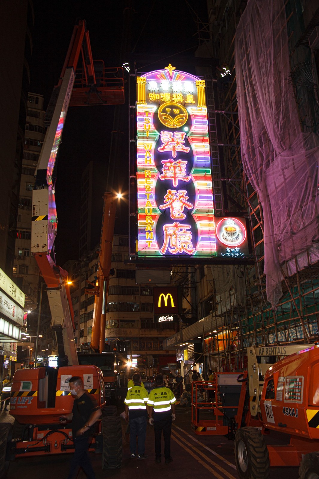 「翠華」是「霓虹交匯」收藏中最大型的招牌。為完整保留它,拆卸時(shí)要封路、小巴改道,相當(dāng)「大陣仗」。(Tetra Neon Exchange提供)