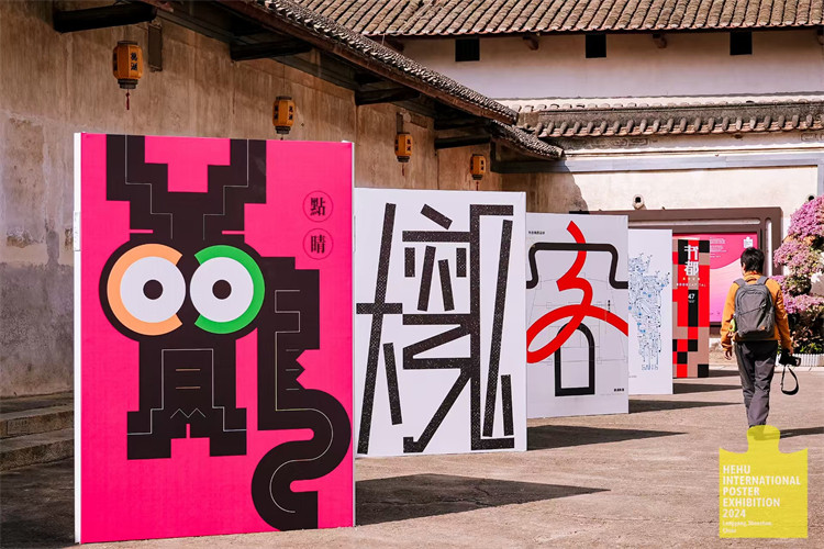 2024鶴湖國際海報(bào)展金獎獲獎?wù)唿S煥保,以「龍崗」、「鶴湖」、「未來」為框架,結(jié)合鶴湖客家圍屋的特色建築和九疊篆獨(dú)特的刻章形式演變設(shè)計(jì),完成了海報(bào)作品《客韻新章》,融入了作者對客家文化、鶴湖文化以及書法和篆刻的理解,作品雄渾大氣,寓意深刻,具獨(dú)特的視角美感而廣受矚目。此外,包括澳門、臺灣在內(nèi)的不少作者也植根自身的文化,嘗試通過多種形式創(chuàng)作出雅俗共賞的海報(bào)作品。