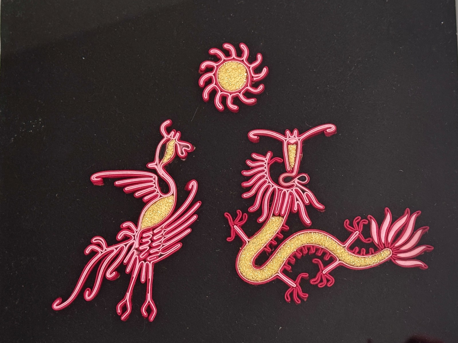 浦明華做的花紐款式多樣,多以具有傳統(tǒng)寓意的圖案為主,如婚禮裙褂上的龍鳳花紐。