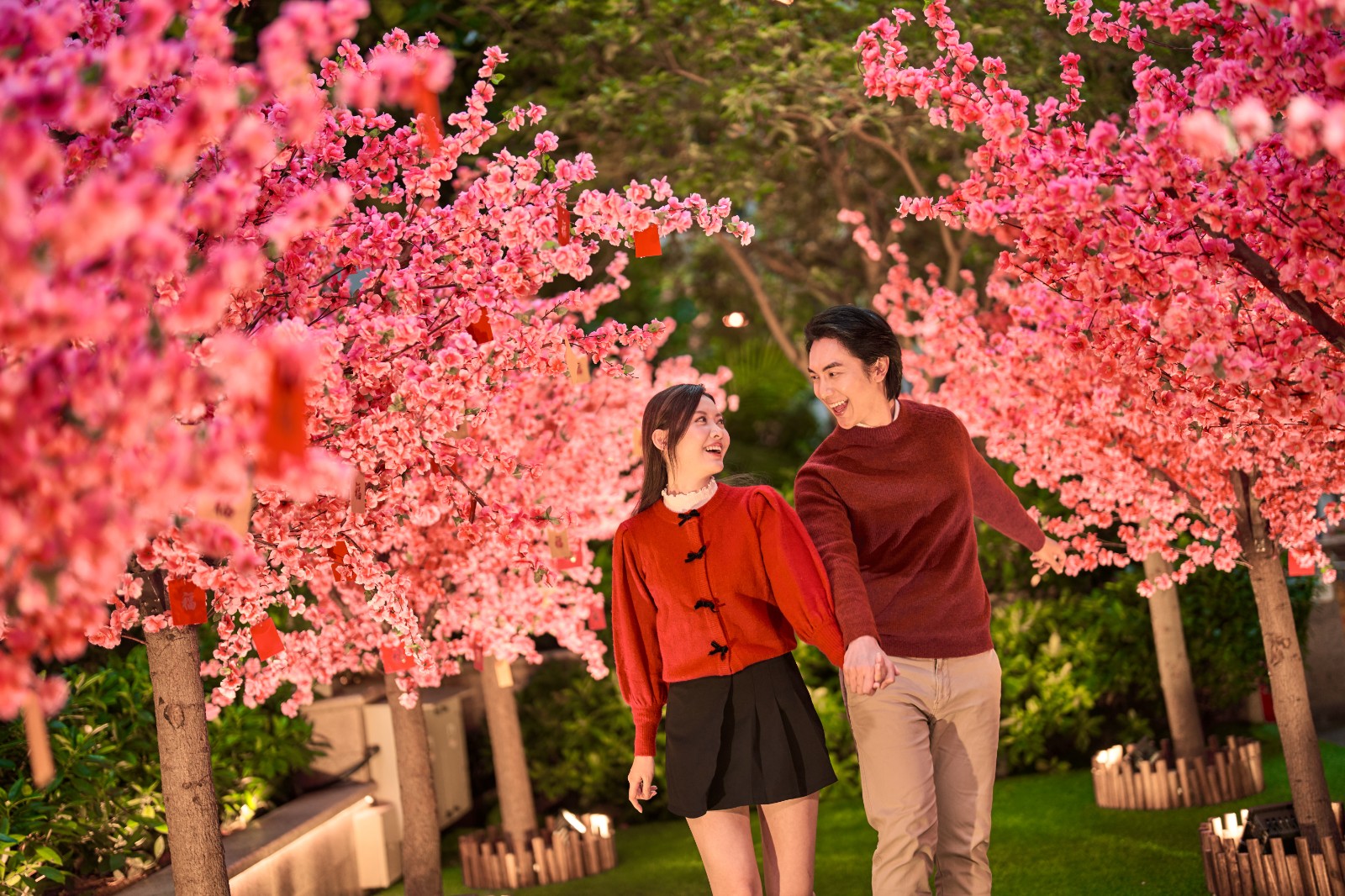 是次活動以「喜慶燈海迎新春」為主題,延續(xù)過往傳統(tǒng),將逾800個豔紅金碧、大小不一的燈籠掛滿林蔭大道的半空。夜幕降臨時燈火輝煌,照耀整個灣仔;今年特別展出金黃色的燈籠,象徵香港的生機勃勃、閃爍奪目,同時祝福財源廣進(jìn)、平安喜樂。中庭設(shè)置了桃花樹園,12棵高近4米的桃花樹聳立於園林之中,搭配大型心形拱門,形成浪漫景致。當(dāng)夜色降臨,桃花樹與大街的燈籠一同亮起,行大運之餘,不妨與摯愛於拱門下合照,感受甜蜜佳節(jié)。