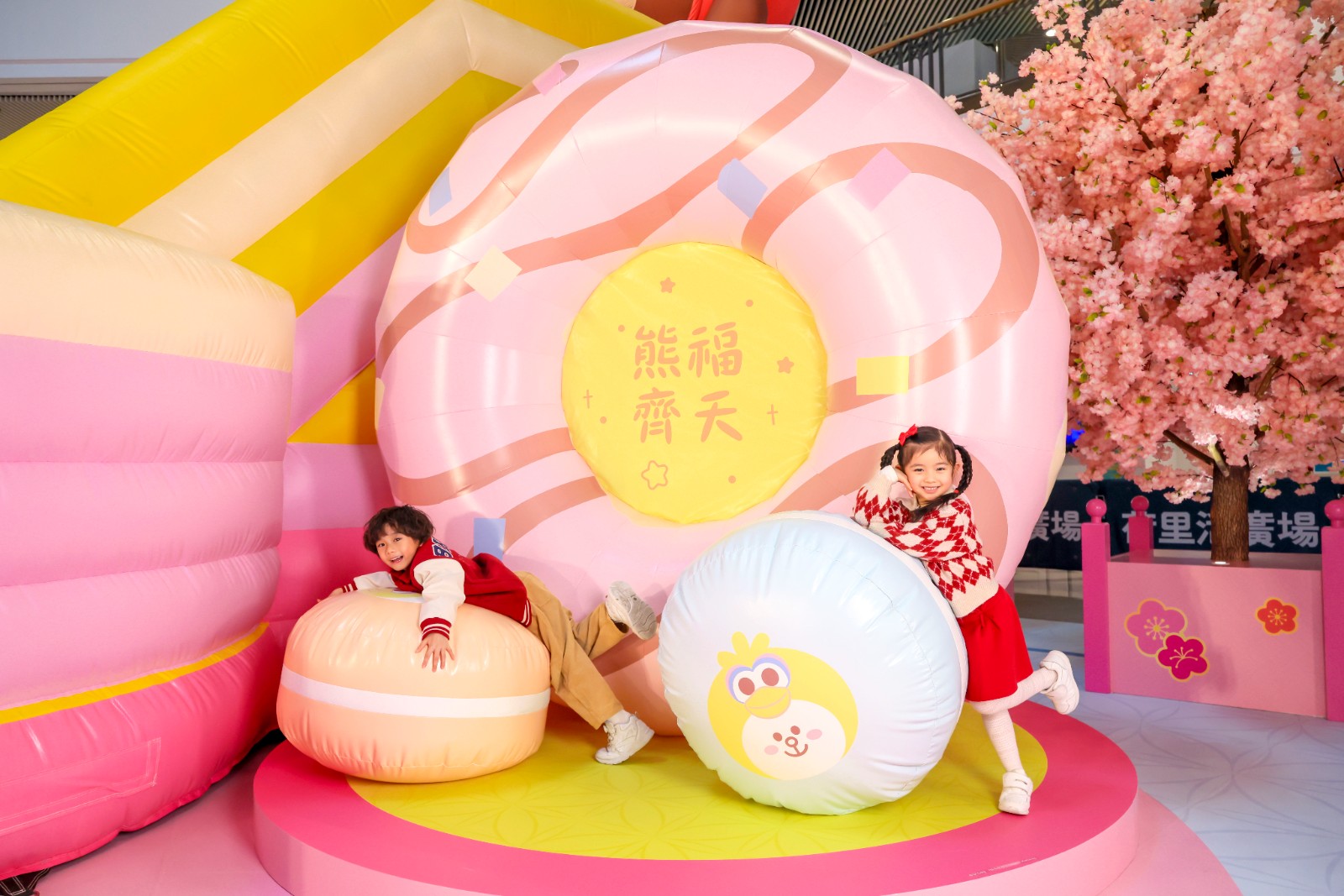 即日起至2月16日,商場1樓明星廣場設(shè)置6米高聯(lián)乘造型Sesame Street Elmo及LINE FRIENDS BROWN「盤滿缽滿糖果滑梯」,讓人感受由高空滑落的刺激快感,一滑而下到布滿糖果的巨型全盒,寓意來年順順利利、豐收連連。場內(nèi)另一亮點「財源滾滾氹氹轉(zhuǎn)」會有愛吃餅乾的Cookie Monster和好友 Big Bird邀請坐上旋轉(zhuǎn)木馬,寓意新一年「轉(zhuǎn)」出財源滾滾的運氣。又或坐在「甜蜜光影庭園」內(nèi),與情人在可愛聯(lián)乘造型的CONY陪伴下,搭配粉紅夢幻的氛圍中拍照留念,祝願來年甜甜蜜蜜,幸福美滿。在「福星高照迎新春」Sesame Street成員以全新可愛造型,等待市民前來合照?!感腋>d綿甜甜圈」有3米高的甜甜圈,加上印有聯(lián)乘造型Big Bird和CONY大頭造型的粉色馬卡龍,氣氛溫馨滿瀉。