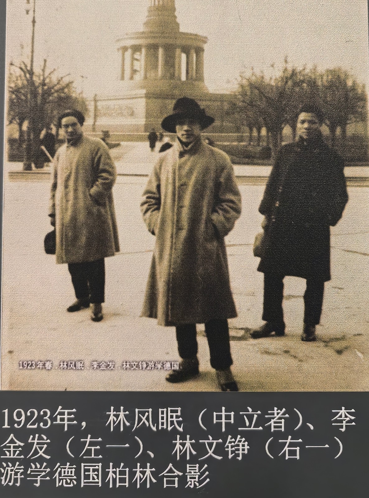 在展覽廳,錯(cuò)落有致地陳列著林風(fēng)眠先生的精美畫作與不同年代的人生經(jīng)歷。其中有一幅是林風(fēng)眠、李金發(fā)、林文錚「三劍客」當(dāng)年去德國遊學(xué)的合映。遙想當(dāng)年,蔡元培先生慧眼識(shí)珠,提掖林風(fēng)眠為中國最年輕的美院校長,乃致整個(gè)美院近半教師均為梅州籍人士,而李金發(fā)、林文錚等便是其中翹夢(mèng)。此乃梅州藝術(shù)家更是客家文化在歷史上的高光時(shí)刻!