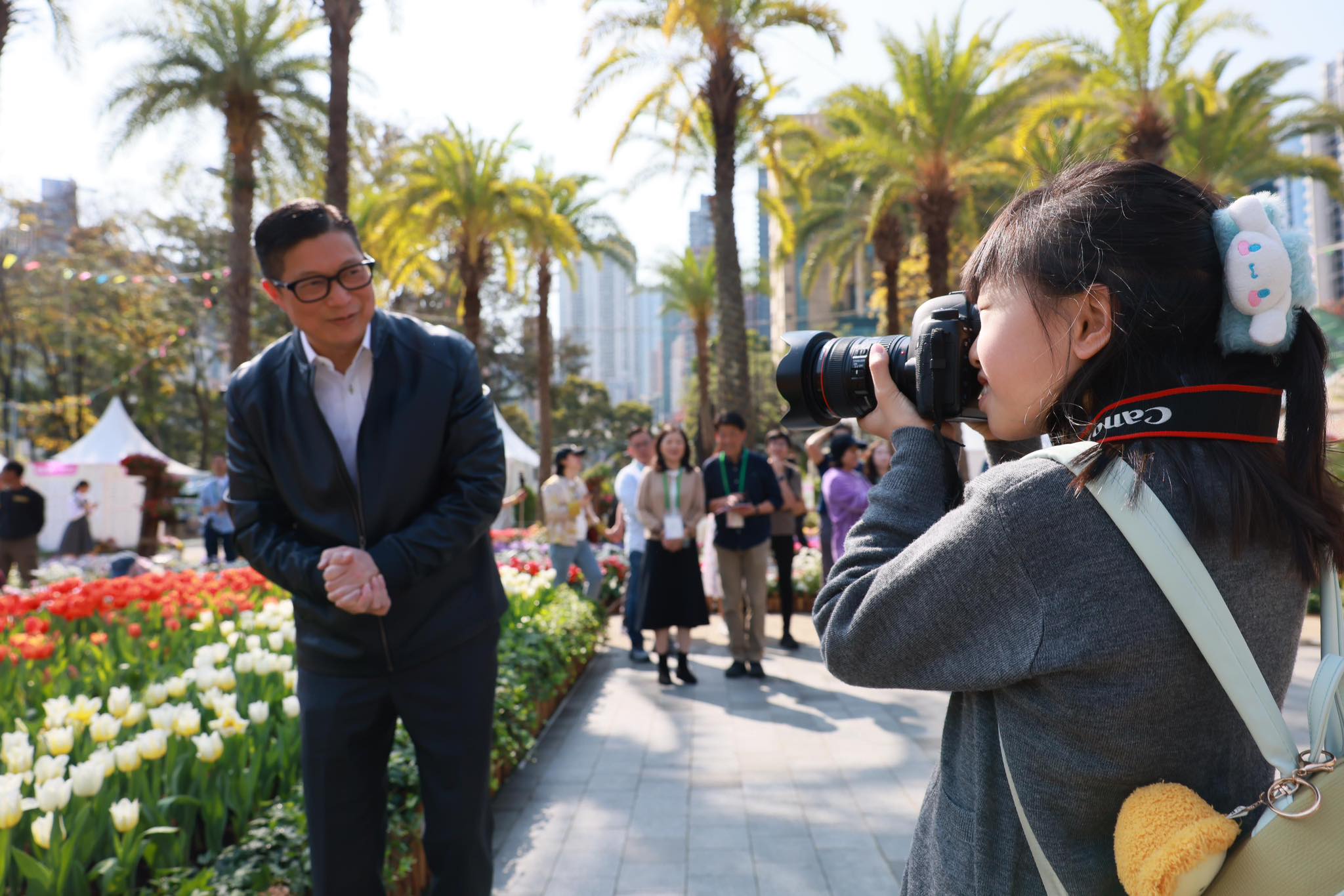 鄧炳強今午在社交平臺發(fā)文表示,「香港盛匯超級三月」日日都有好節(jié)目,他趁著今天周末去逛維園花展,遇到好多市民來賞花打卡,每個展區(qū)都各具特色,繁花似錦。