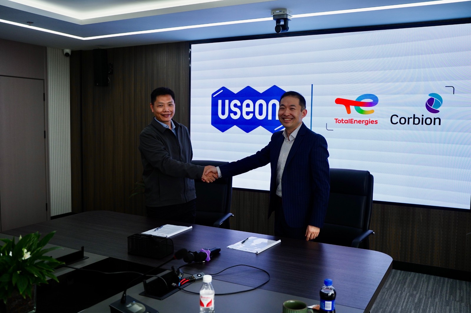 越升科技董事長(zhǎng)陳志強(qiáng)與道達(dá)爾能源科碧恩全球市場(chǎng)總監(jiān)丁豪代表雙方簽署戰(zhàn)略合作