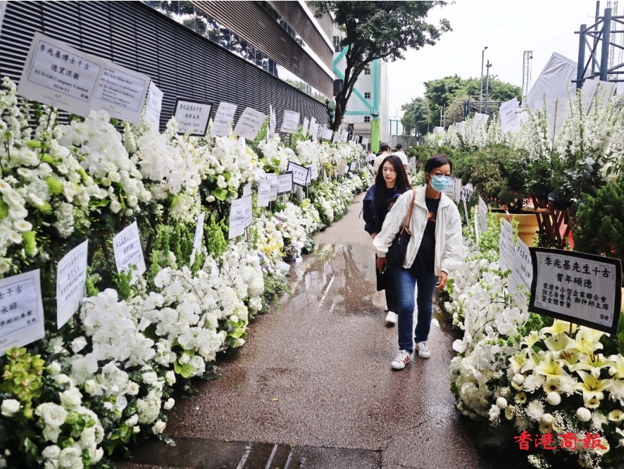 殯儀館對出球場另設(shè)大型悼念區(qū),不少員工及市民到場向李兆基道別。