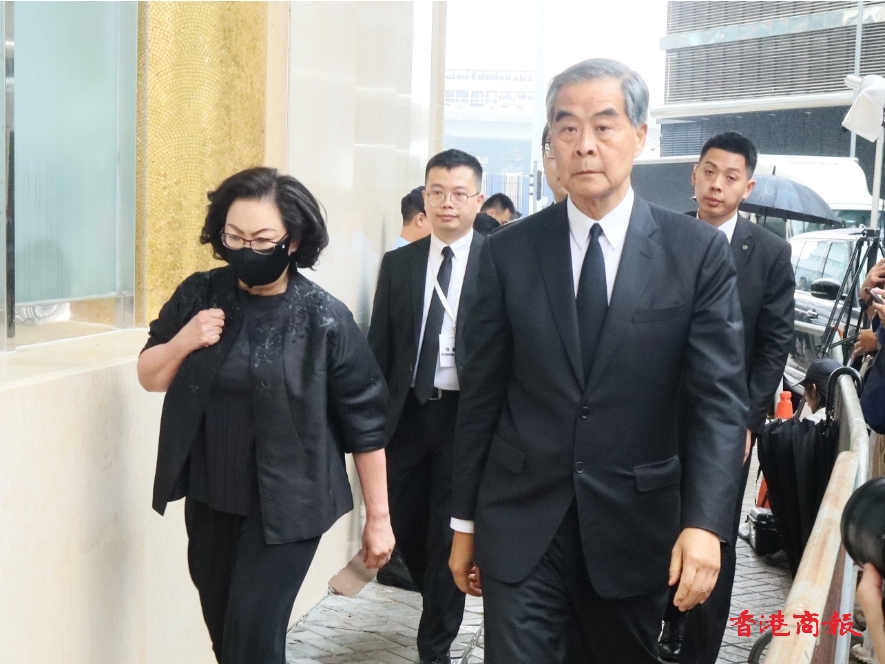全國政協(xié)副主席、前行政長官梁振英伉儷。(記者馮瀚文攝)