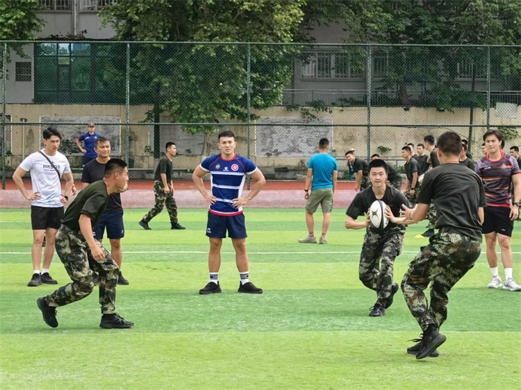 隨後,交流團(tuán)還參觀了湖南省羽乒中心、軍士教育學(xué)院宿舍。最後,一行又來到學(xué)院足球場,與體育職業(yè)學(xué)院的健兒們展開橄欖球交流活動。香港警員化身教練,耐心向?qū)W生們傳授橄欖球技巧。理論講解後,雙方展開了一場精彩紛呈的友誼賽,隊(duì)員們默契配合、奮勇爭先,颯爽英姿在綠茵場上飛馳。一記精妙的斜傳配合後,隊(duì)員成功觸地得分,場邊瞬間沸騰。香港警察橄欖球會團(tuán)長曾sir感慨:「這些學(xué)員的領(lǐng)悟力和執(zhí)行力令人驚歎,他們展現(xiàn)的不僅是體育素養(yǎng),更是中國青年敢打敢拼的精氣神!」