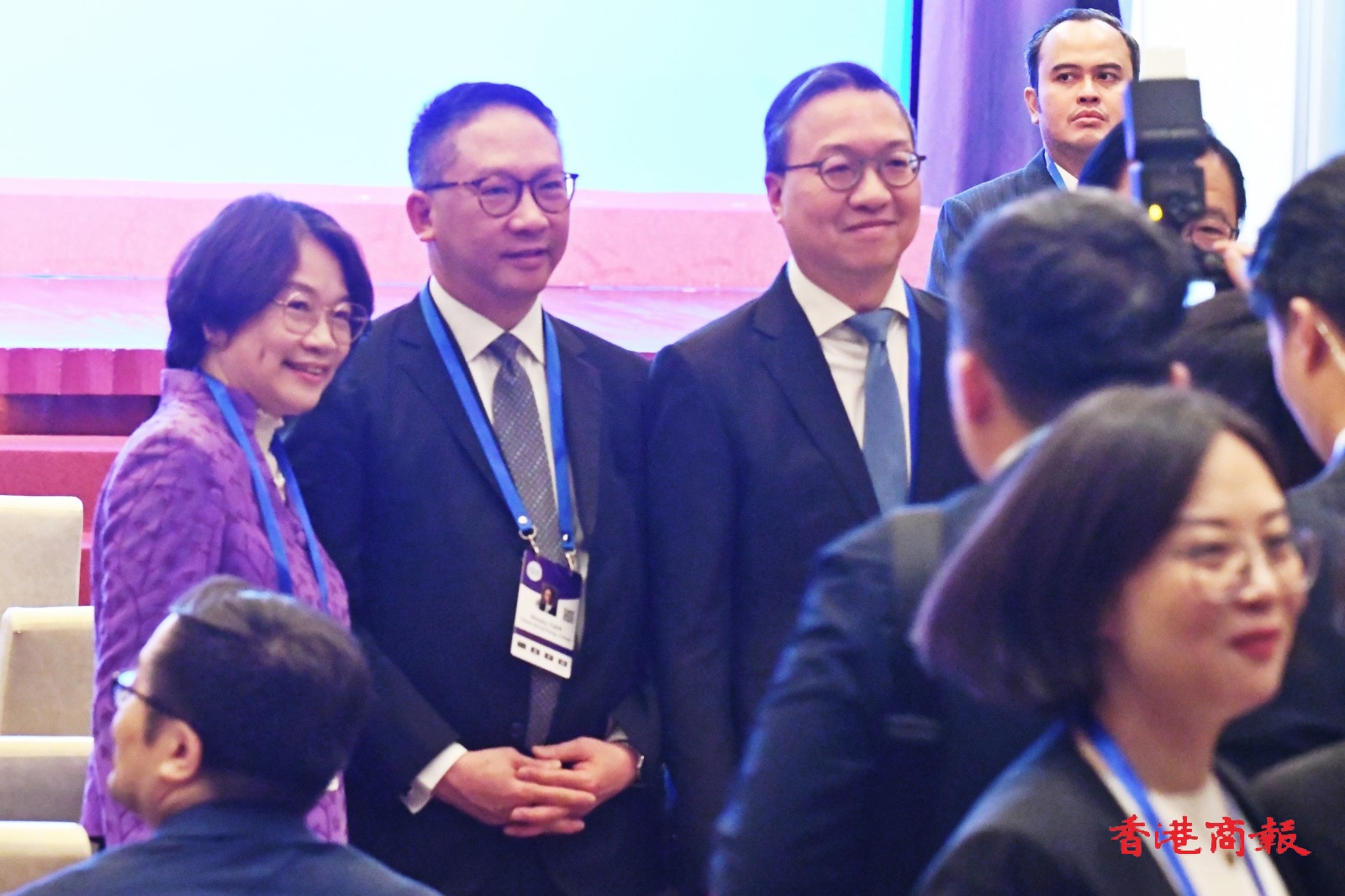 今日出席儀式的特區(qū)政府官員還有政制及內(nèi)地事務(wù)局局長曾國衞、勞工及福利局局長孫玉菡、民政及青年事務(wù)局局長麥美娟、房屋局局長何永賢、公務(wù)員事務(wù)局局長楊何蓓茵、保安局局長鄧炳強等人。前任官員則包括兩位前律政司司長袁國強以及鄭若驊,立法會議員包括經(jīng)民聯(lián)林健鋒和梁美芬、飲食界張宇人等。(記者葉家亨 馮瀚文攝)