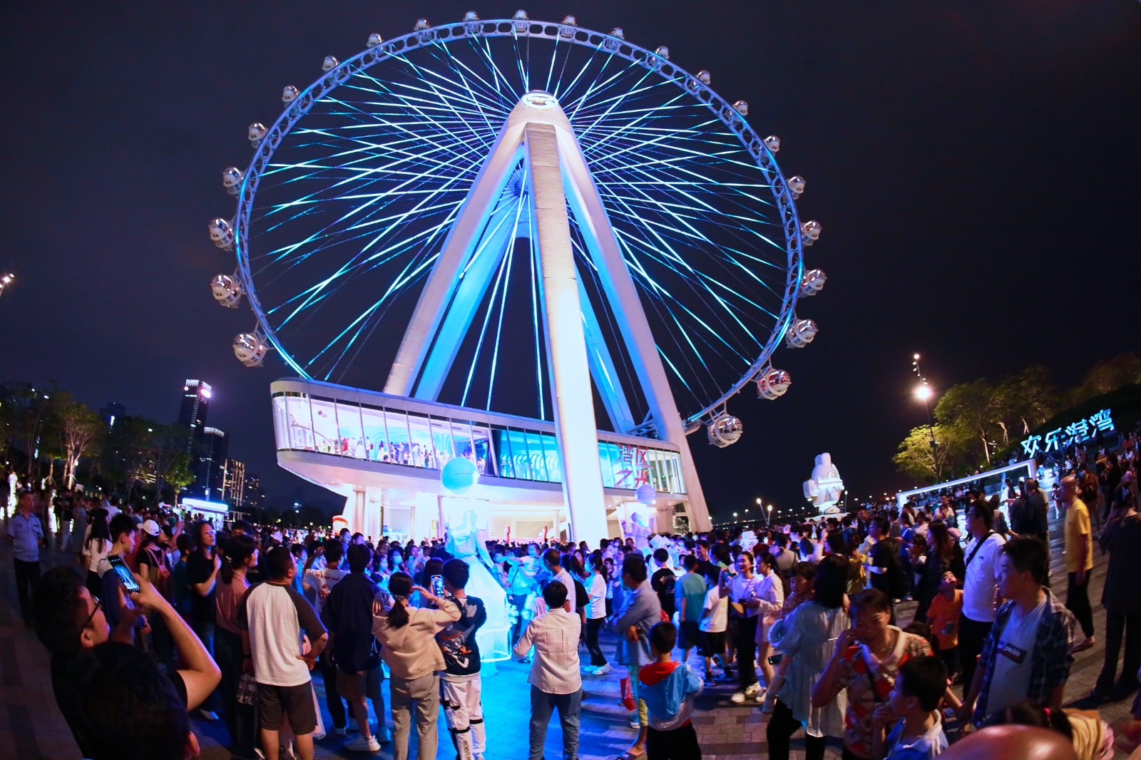 全天景回轉(zhuǎn)式大轎廂「灣區(qū)之光」摩天輪高達(dá)128米。