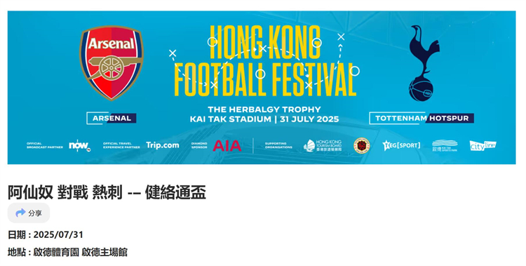 票務(wù)連結(jié):https://sports.cityline.com/tc/2025/arsvstot.html