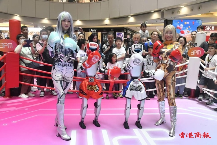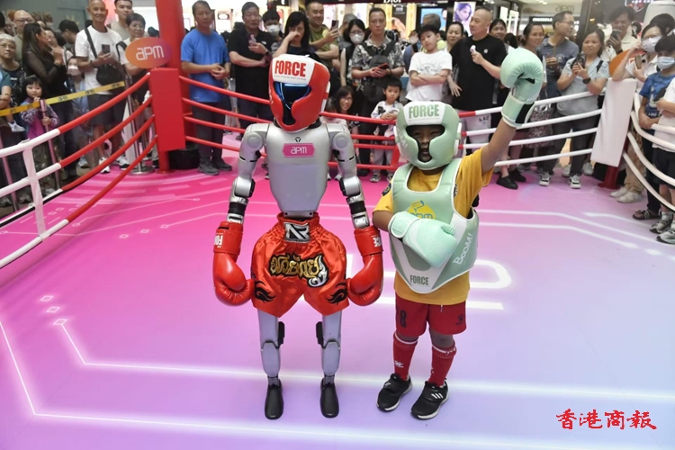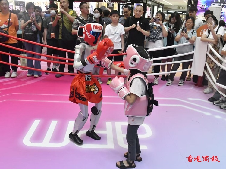 APM商場安排讓部分市民進入會場,和AI機械人進行互動,他們觀看AI機械人參與拳擊對壘後,大會安排小孩踏上擂臺和AI機械人互相切磋,不少小朋友表現勇敢,施展渾身解數,希望擊敗機械人,家長們則在旁邊,一邊拍下子女的英姿,一邊為子女打氣。商場又安排市民、模特兒和機械人合照留念。