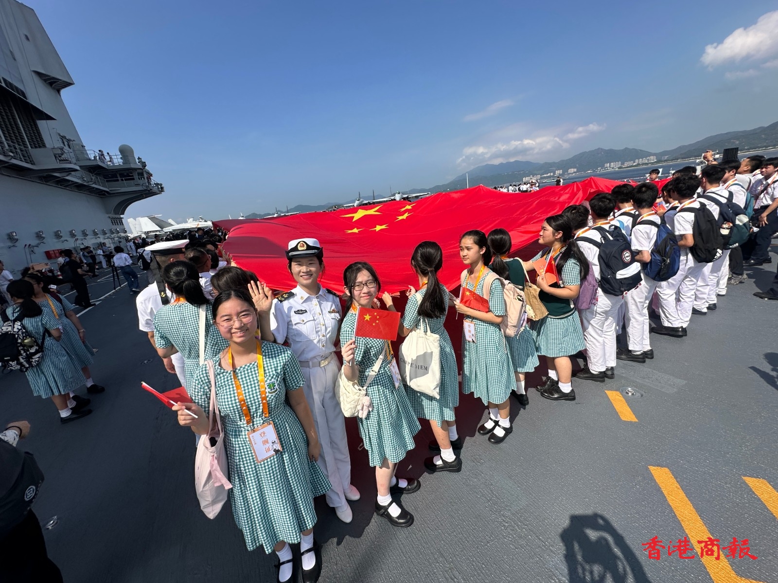 多圖|山東艦快閃活動(dòng) 官兵與學(xué)生拉開五星紅旗鋪滿甲板