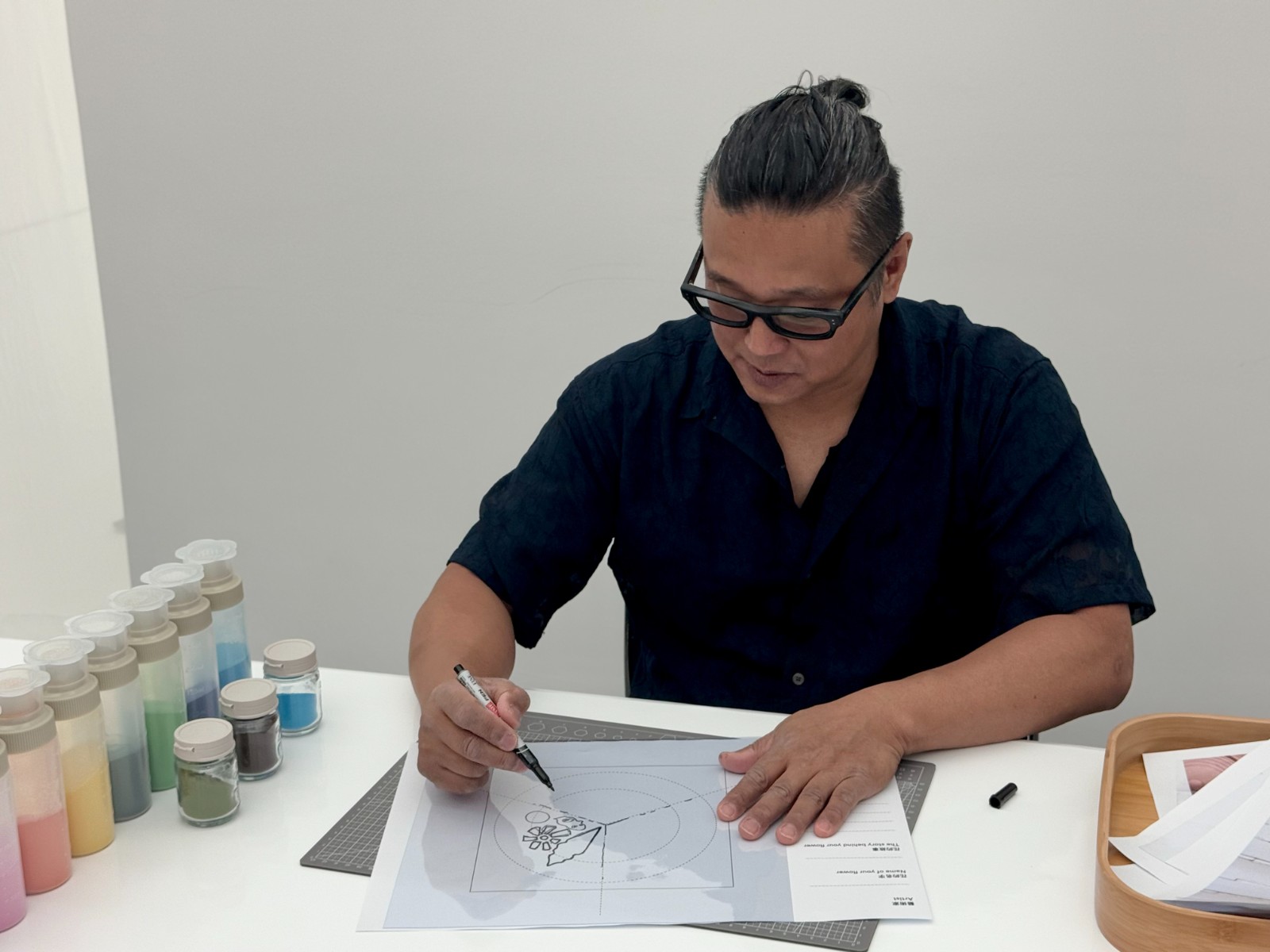 大卷伸嗣示範(fàn)如何用粉末材料作畫。
