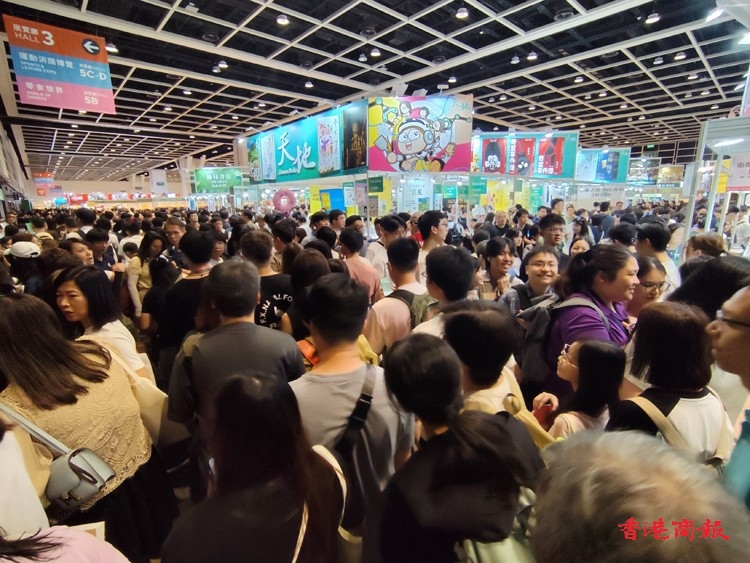 書展踏入第4天,會(huì)場(chǎng)人山人海,擠得水洩不通。(馮瀚文攝)