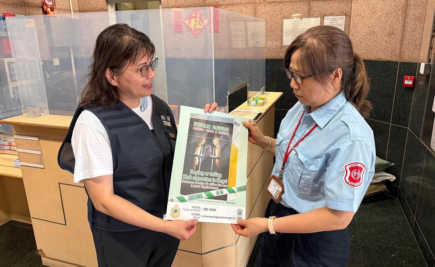 海關(guān)前日(28日)聯(lián)同立法會(huì)議員梁文廣、深水埗區(qū)區(qū)議員、衞生署控?zé)熅妻k公室及房屋署在深水埗富昌邨進(jìn)行聯(lián)合反私煙宣傳活動(dòng)。