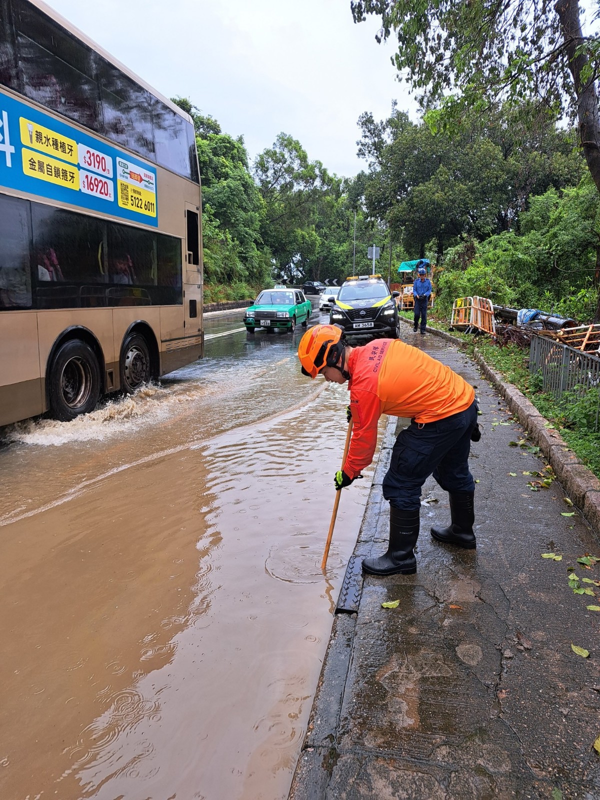 民安隊(duì)表示,昨日(2日)的暴雨警告信號(hào)持續(xù)一整日,包括黃雨、紅雨和黑雨,本港廣泛地區(qū)受到水浸影響。民安隊(duì)在惡劣天氣條件下,派遣水災(zāi)救援隊(duì)伍前往各區(qū)進(jìn)行巡邏,包括北區(qū)、西貢區(qū)及港島西區(qū)等,積極處理多處積水情況,並疏通重要道路,以確保交通暢通及市民安全。(記者區(qū)天海)