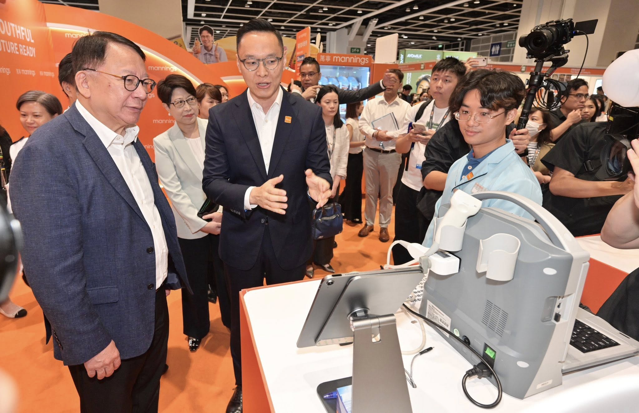 政務(wù)司司長陳國基今日(15日)到訪「美食商貿(mào)博覽及美與健生活博覽」,其間參觀多個展位,包括健康食品、身體檢查示範(fàn)等。他在社交平臺發(fā)文表示,很高興看到專門服務(wù)老友記的銀髮經(jīng)濟(jì)有長足發(fā)展,軟餐等各種銀髮友善食品亦越趨精緻。