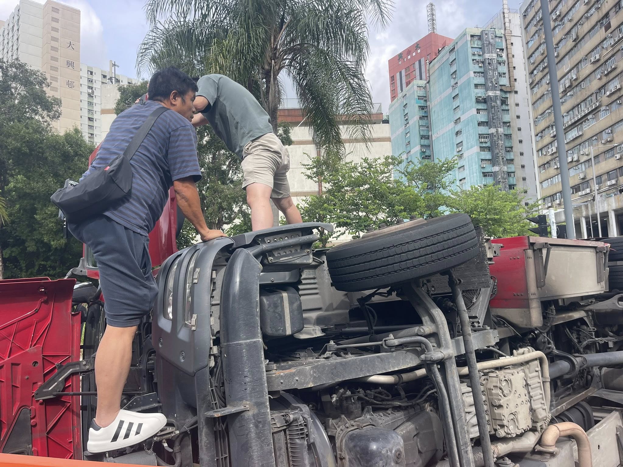 屯門鳴琴路消防車被撞翻 造成7人受傷包括5消防員