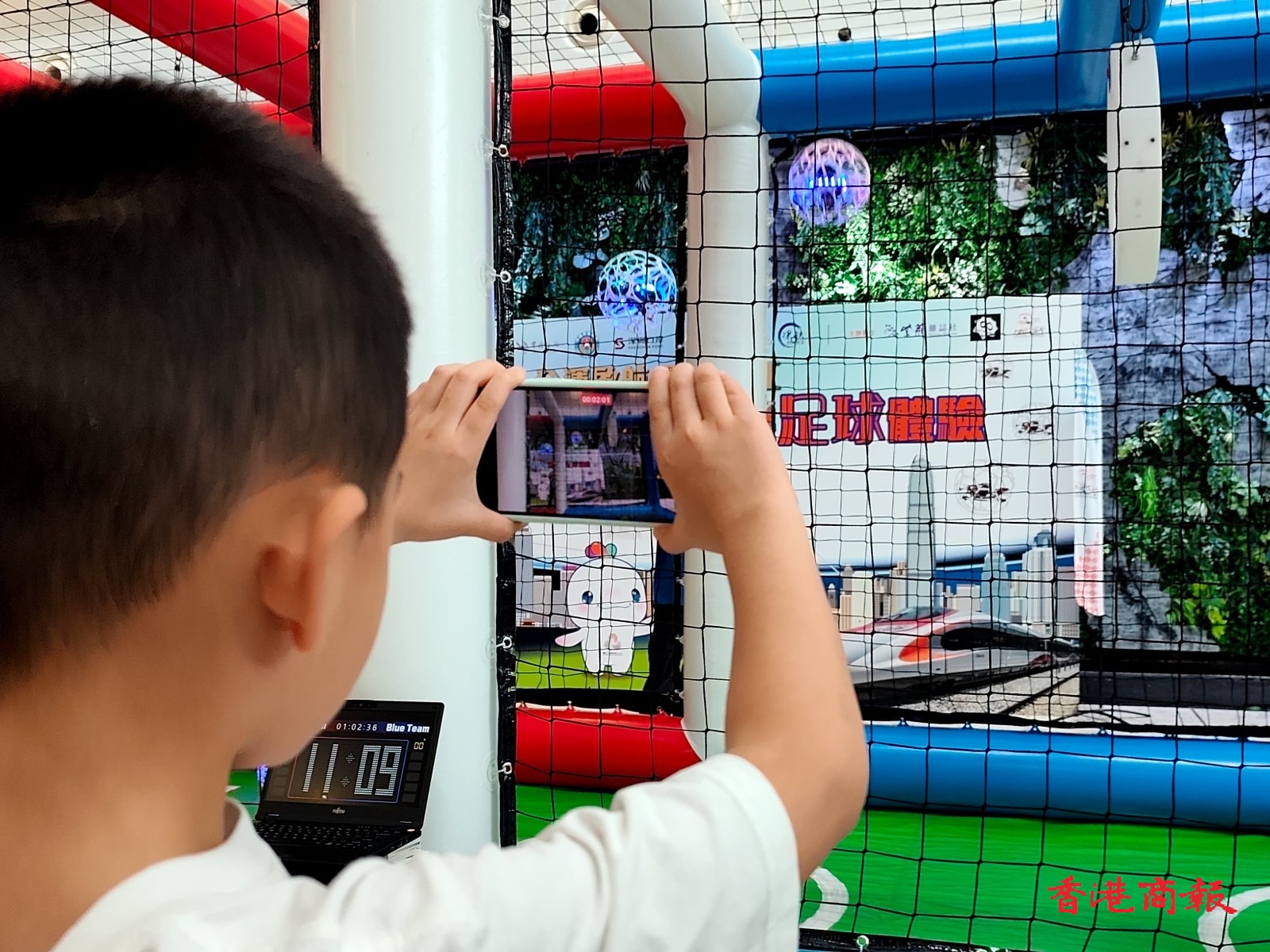 無人機(jī)足球體驗(yàn)令學(xué)生們很投入。記者 馮瀚文攝