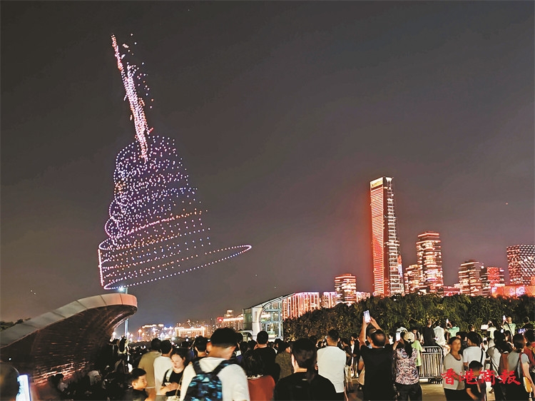 26日晚,一場融合科技與藝術(shù)的無人機燈光秀表演在市民廣場和人才公園同步上演。1.2萬架無人機騰空而起,與城市燈光秀交相輝映,以天空為幕、以科技為筆,為市民遊客獻上一場科技與藝術(shù)共舞的視覺盛宴,講述了深圳經(jīng)濟特區(qū)建立45年的發(fā)展奇跡。