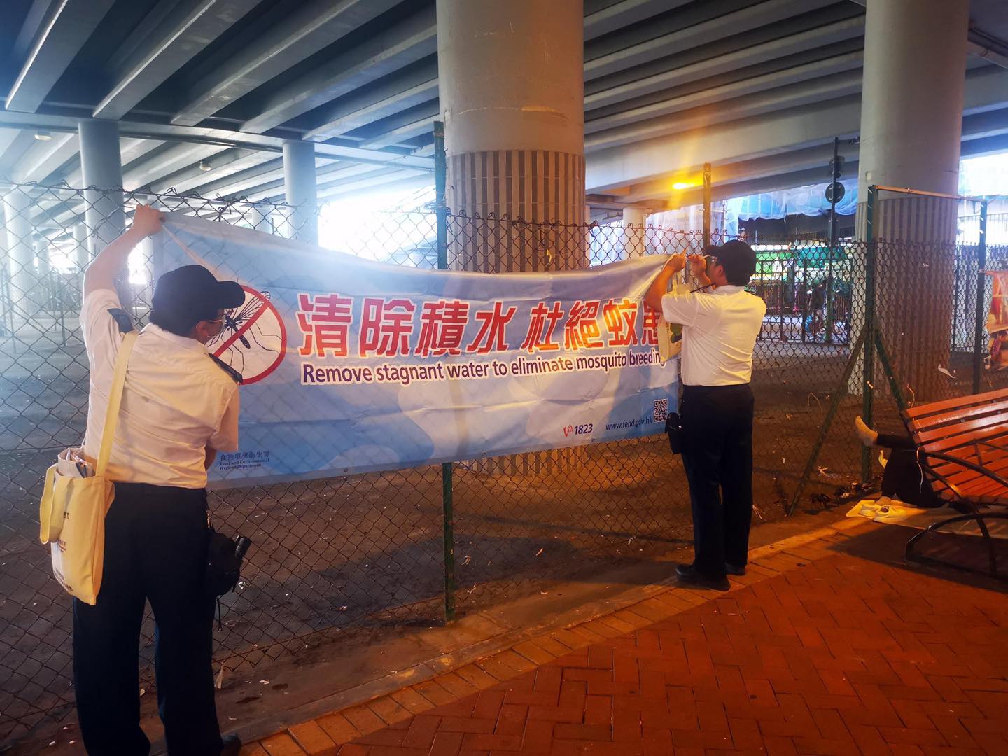 深水埗民政處亦積極跟進事件,昨日深水埗民政專員王浩宇、深水埗區(qū)衛(wèi)生總督察周振賢聯(lián)同美孚聯(lián)合小區(qū)關(guān)愛隊成員、郭彥麗區(qū)議員、美孚新邨物管公司代表、荔枝角公園職員及多位政府部門代表展開聯(lián)合行動,於美孚港鐵站外、萬事達廣場橋底空間及荔灣街市進行跨部門宣傳工作,向居民及外籍家庭傭工派發(fā)防蚊宣傳資訊及防蚊用品。其後到邨內(nèi)各位置視察環(huán)境,居民均感謝各部門及關(guān)愛隊迅速行動。(記者區(qū)天海)