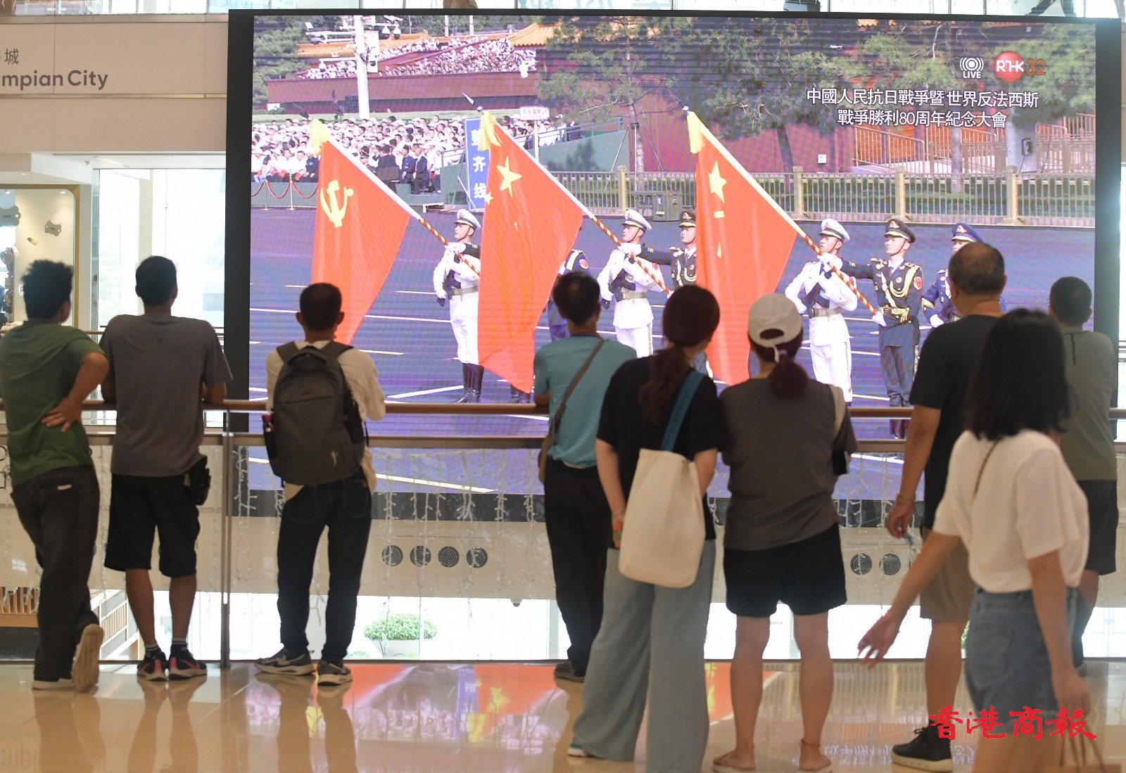 圖集 | 【抗戰(zhàn)勝利80周年】香港市民在商場觀看九三盛大閱兵直播