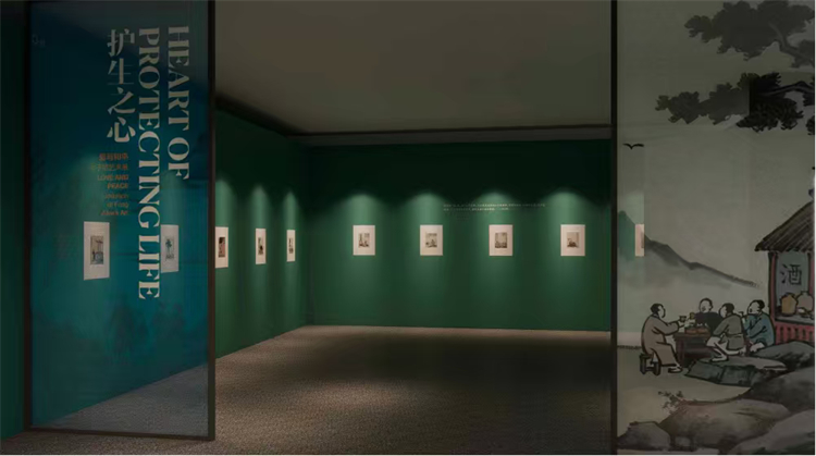 展覽第一板塊「家國(guó)之情」,展出豐子愷先生以抗日戰(zhàn)爭(zhēng)為題材的漫畫(huà),展現(xiàn)先生以筆為槍、心繫家國(guó)的深沉情懷。展覽第二板塊「詩(shī)意之韻」,以詩(shī)入畫(huà)、融畫(huà)於詩(shī),勾勒出豐子愷先生作品中西融合、靈動(dòng)雋永的詩(shī)意境界。展覽第三板塊「童真之趣」,聚焦兒童題材,頌揚(yáng)純真、批判世俗,體現(xiàn)豐子愷先生赤子之心與藝術(shù)追求的統(tǒng)一。展覽第四板塊「護(hù)生之心」,傳遞豐子愷先生慈悲護(hù)生、宣導(dǎo)和平的精神理念。
