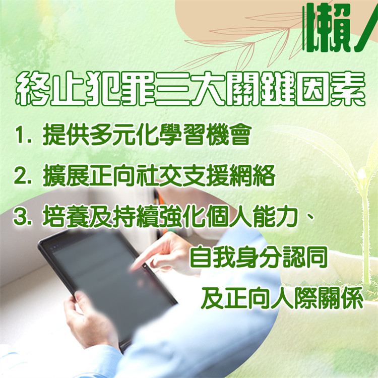 中大心理學(xué)系研究教授梁永亮教授在研討會上公布研究結(jié)果時指出,透過更生服務(wù)以正面的方法滿足更生人士對關(guān)愛及個人能力的內(nèi)心需要,有助他們改過自新及遠(yuǎn)離犯罪。研究歸納出3個關(guān)鍵因素,包括提供多元化的學(xué)習(xí)機(jī)會、擴(kuò)展正向社交支援網(wǎng)絡(luò),以及培養(yǎng)及持續(xù)強(qiáng)化個人能力、自我身份認(rèn)同與正向人際關(guān)係。研究亦顯示,懲教署的更生計(jì)劃不單有助降低更生人士的重犯機(jī)會,重塑奉公守法的新身份,重新連結(jié)社會,亦支援他們回饋社會,逐步轉(zhuǎn)化人生。