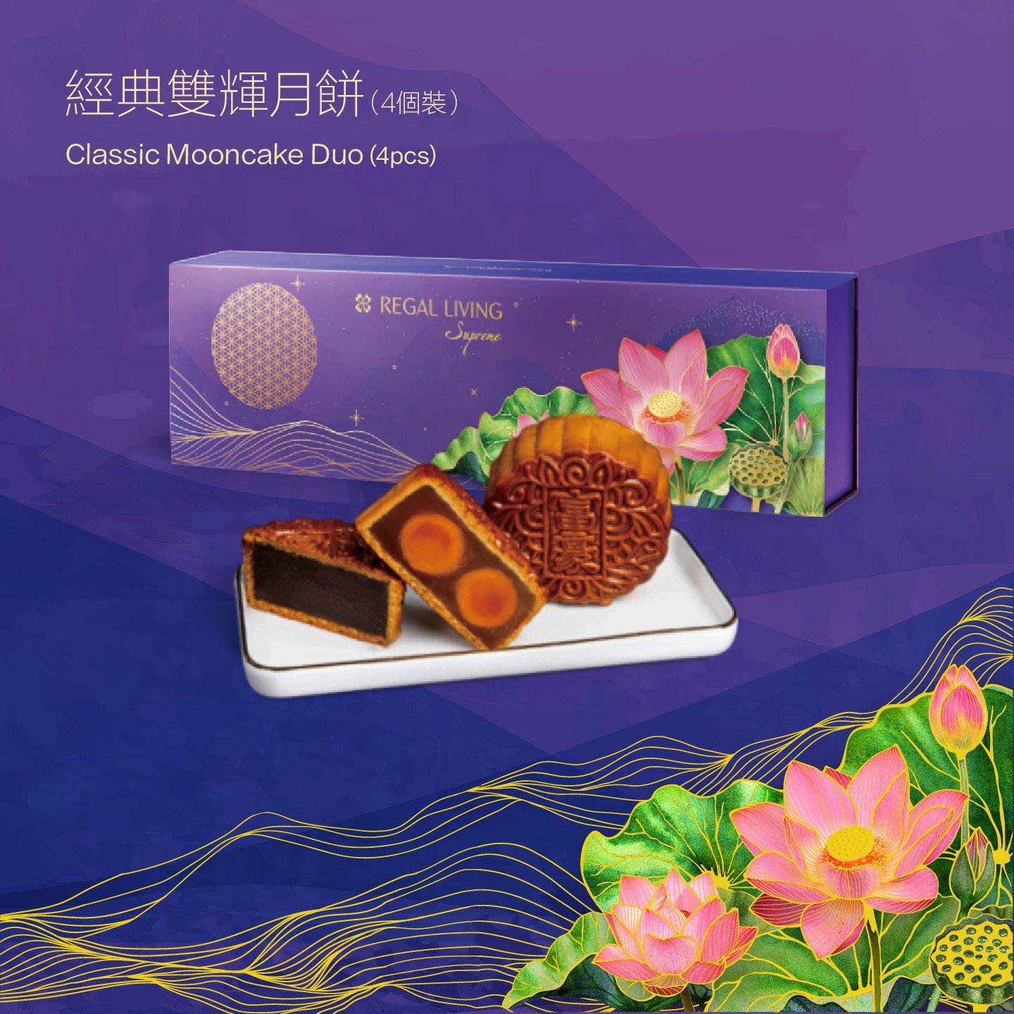 三色月餅禮盒(6個裝)(原價HK$398、預(yù)訂優(yōu)惠價HK$325)精選三款人氣口味,玫瑰奶皇麻糬月餅將玫瑰花香融入綿密奶皇餡中,淡雅芬芳令人回味;金沙奶皇麻糬月餅以鹹蛋黃與奶皇的黃金比例,帶來鹹甜交織的豐富層次;黑芝麻麻糬月餅將傳統(tǒng)芝麻香與煙韌麻糬結(jié)合,散發(fā)濃郁的芝麻香味。雙黃白蓮蓉月餅(4個裝)(原價HK$448、預(yù)訂優(yōu)惠價HK$368)是孝敬長輩之選,選用純正湘蓮製作出白蓮蓉,口感幼滑細膩,配以經(jīng)烘烤後金黃的鹹蛋黃,鹹香四溢,令人回味。