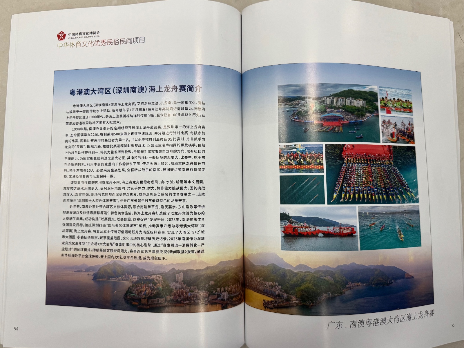 近日,國家體育總局體育文化發(fā)展中心公布了「2025中華體育文化優(yōu)秀項目」名單,粵港澳大灣區(qū)(深圳南澳)海上龍舟賽脫穎而出,成功入選2025年中華體育文化優(yōu)秀項目(民俗民間項目類),廣東省僅此賽與增城醒獅上榜,成為深圳市唯一入選的項目!該賽事於2025年9月12日至14日在中國體育文化博覽會上進行了集中宣傳與推介。