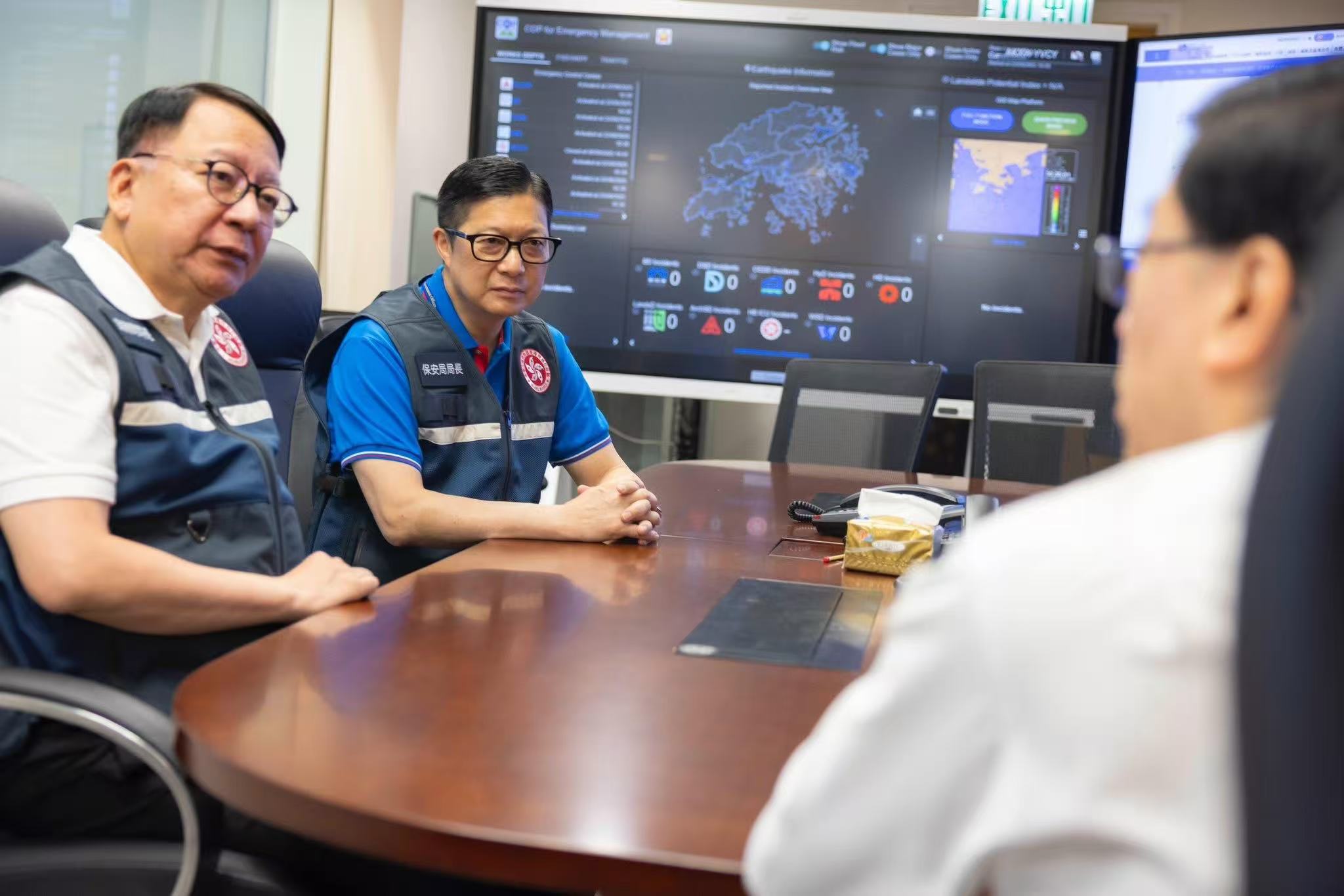 李家超與陳國基及鄧炳強(qiáng)開會 討論部署應(yīng)對超強(qiáng)颱風(fēng)「樺加沙」