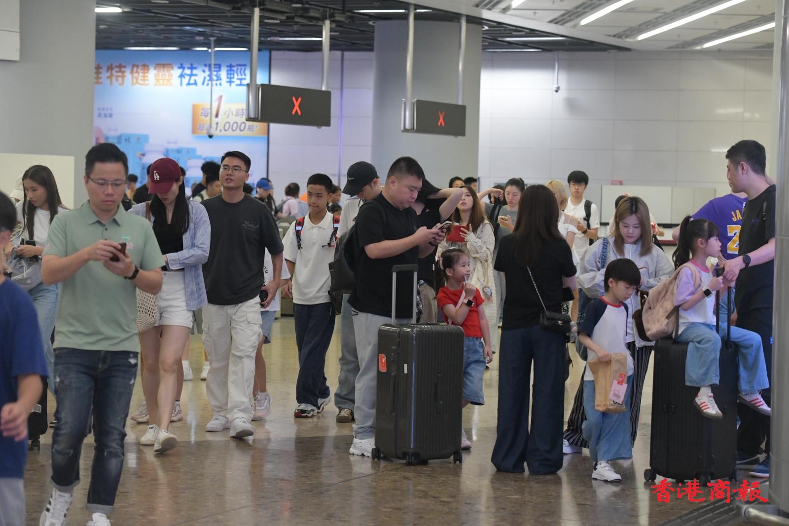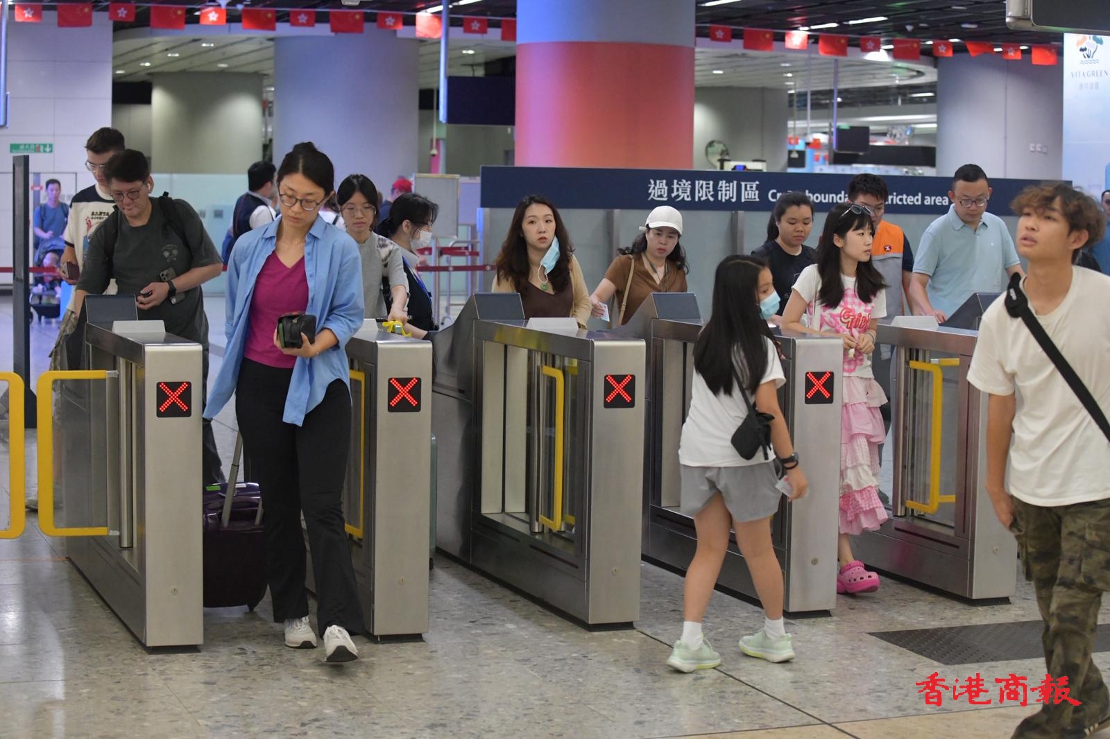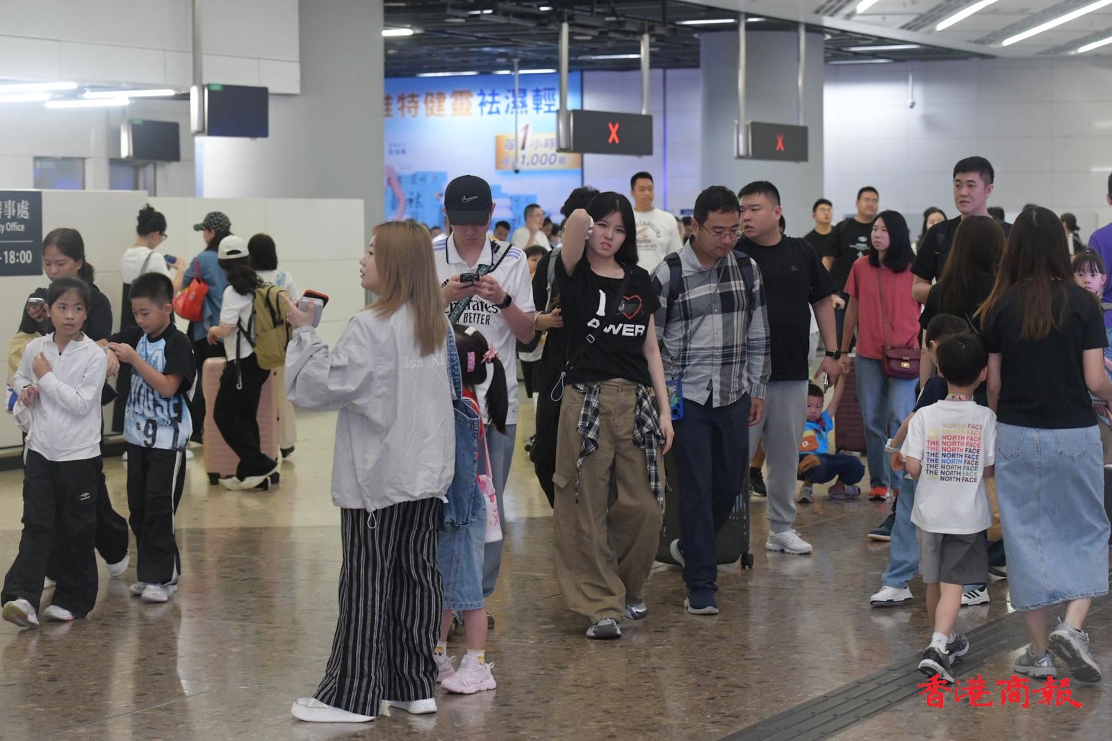 在西九龍高鐵站,抵港層人潮增多。