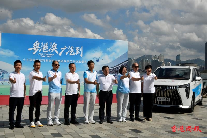 全國運動會香港賽區(qū)統(tǒng)籌辦公室主任楊德強、副主任何麗嫦、助理主任陸智剛,廣汽國際總經(jīng)理衛(wèi)海崗、副總經(jīng)理王順勝,以及廣汽國際香港經(jīng)銷商代表黃毅力、董勝輝等出席交付儀式。