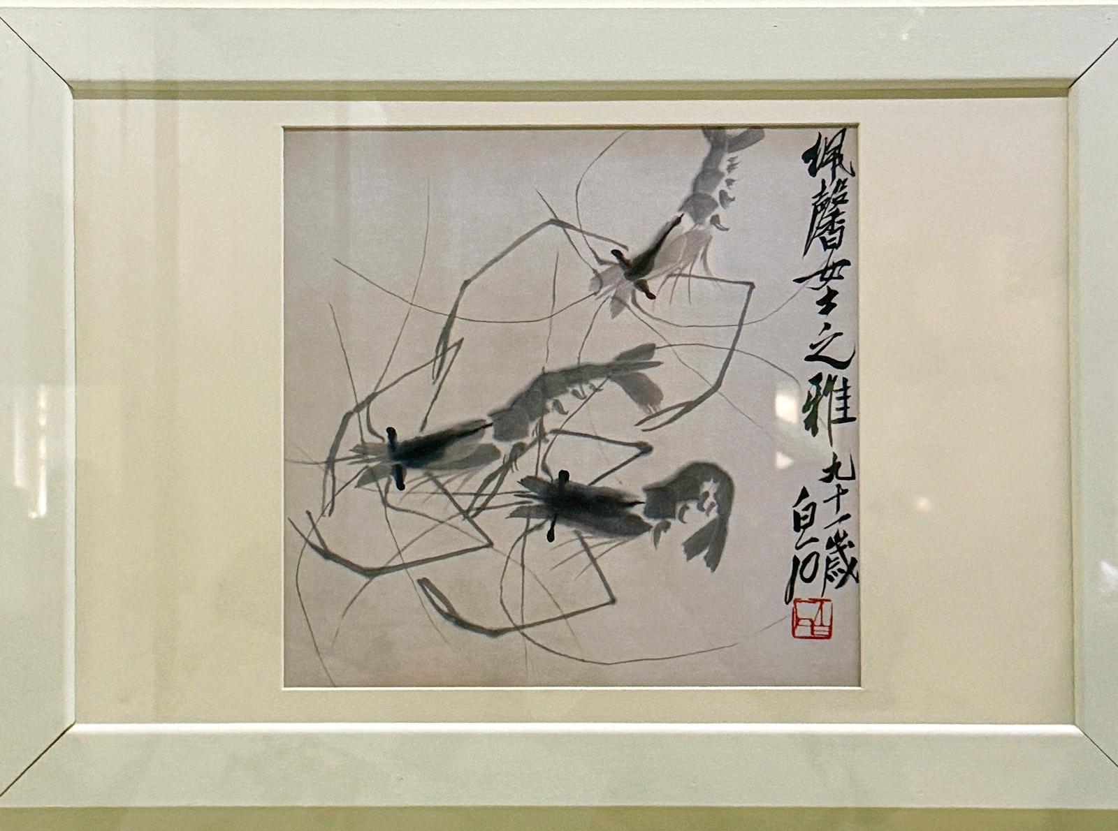 在畫壇上,齊白石的蝦、徐悲鴻的馬、趙少昂的蟬,被稱為「三絕」。趙少昂筆下的蟬,蟬翼輕透,筆致細(xì)膩不失空靈,墨色清潤(rùn),不僅傳達(dá)趙氏對(duì)自然與生命的深刻體悟,還是精神之寄,他常以蟬自喻。是次不但展出多幅趙少昂的蟬畫,還同場(chǎng)展示了齊白石、徐悲鴻等國畫大師送贈(zèng)予趙少昂的畫作,包括《群蝦圖》、《飲馬圖》。林館長(zhǎng)表示,不少展品為趙少昂家人首度借出展示,其中《群蝦圖》背後蘊(yùn)藏兩位大師相知相遇、互贈(zèng)佳作的故事,「齊白石非常欣賞趙少昂所畫的蟬,故趙少昂欣然畫了一幅蟬畫送給他。齊白石收到後,畫了幅蝦圖送給趙少昂太太。這幅展品一直掛在趙家的客廳,從未展示過,應(yīng)這次展覽借展展出?!?/p>