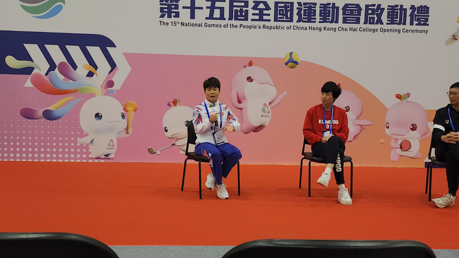 啟動禮特設(shè)精英運(yùn)動員互動環(huán)節(jié),耿曉靈、歐倩瑩及葉姵延以其運(yùn)動生涯的奮鬥歷程與心得,勉勵(lì)在場學(xué)生堅(jiān)持理想、勇於面對挑戰(zhàn)。歐倩瑩表示,比賽前有時(shí)會感到緊張,因此會和並肩作戰(zhàn)的隊(duì)友傾訴,大家有傾有講,甚至?xí)嘀凶鳂罚瑏K形容「果啲辛苦只係一個(gè)難關(guān)」,秉持著這份信念便可以捱過難關(guān)。她續(xù)說,由於自己有宗教信仰,因此亦會透過祈禱調(diào)整緊張情緒,希望得到平靜的心情應(yīng)戰(zhàn)。