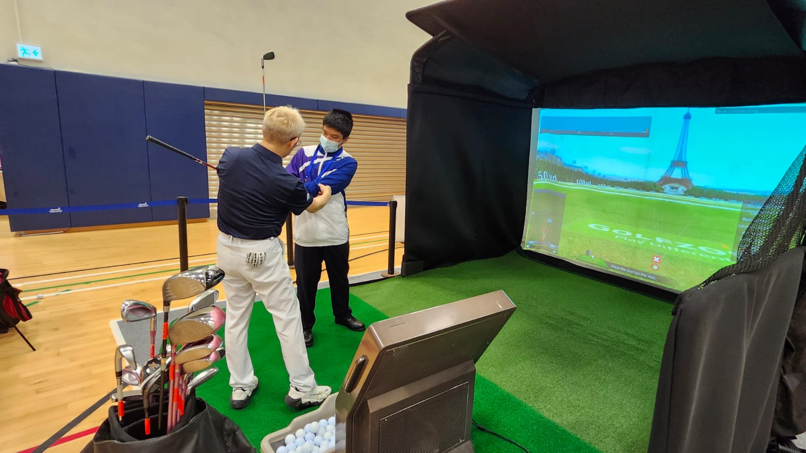 香港珠海學(xué)院在體育館內(nèi)設(shè)置多元互動體驗(yàn)區(qū),包括哥爾夫球、籃球、沙灘排球、橄欖球等運(yùn)動項(xiàng)目,供前來參觀的中學(xué)生試玩,現(xiàn)場氣氛熱烈。(記者/攝影 葉家亨)