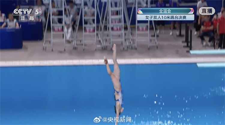 第十五屆全國(guó)運(yùn)動(dòng)會(huì)跳水項(xiàng)目女子雙人10米臺(tái)決賽6日晚在廣東奧林匹克體育中心舉行,最終,上海隊(duì)組合陳芋汐/掌敏潔以350.22分奪得金牌,四川隊(duì)組合李蕊汐/盧為以322.44分奪得銀牌,江蘇隊(duì)組合劉軍熙/孟澤瑞以316.44分摘銅。廣東隊(duì)組合全紅嬋/王偉瑩獲得第五名,成績(jī)?yōu)?11.76分。(圖片截自央視節(jié)目)