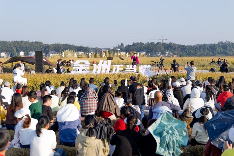 11月15日,「金洲正當(dāng)燃」小鎮(zhèn)青年稻田音樂會在寧鄉(xiāng)市金洲鎮(zhèn)箭樓村上演,活動現(xiàn)場更有摸魚比賽、「迷你村BA」、非遺皮影戲,現(xiàn)場遊客還可以在「寧饗好物」市集品嘗寧鄉(xiāng)四小碟等地方特色美食,可謂驚喜多多。