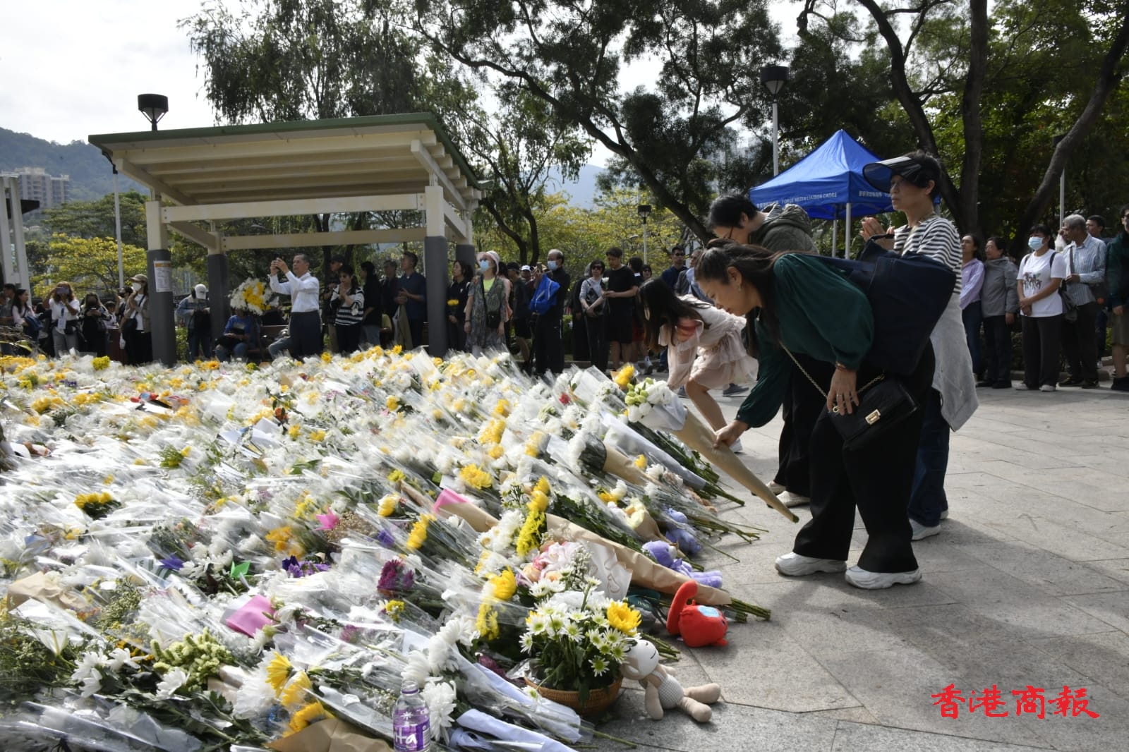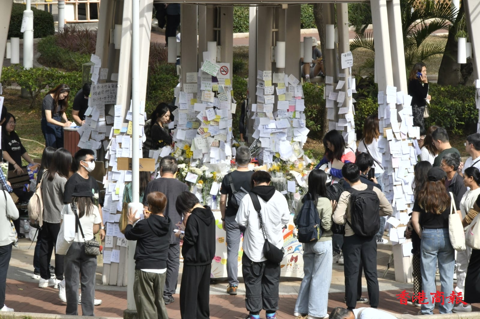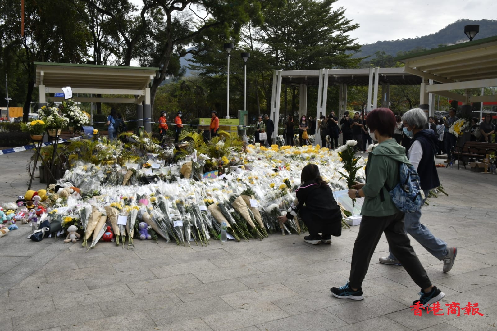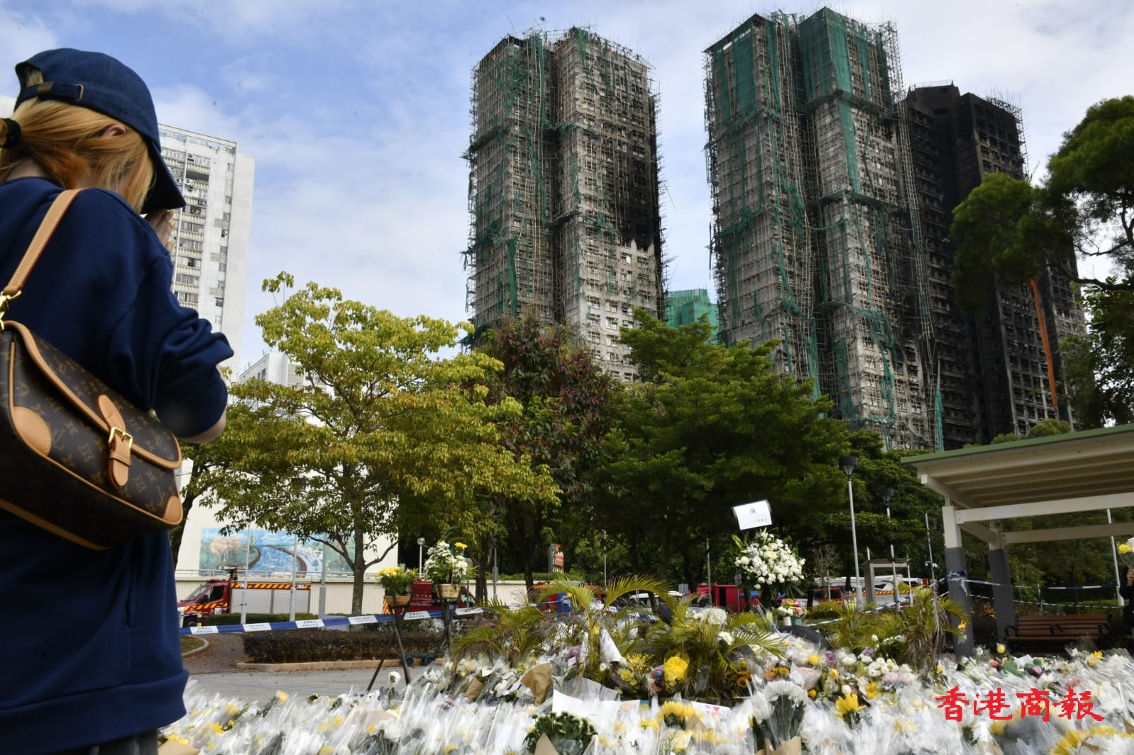 大埔宏福苑11月26日發(fā)生五級大火,今日(12月1日)是工作日,不少市民繼續(xù)帶同鮮花到涉事屋苑向受災居民及遇難者表達心意。