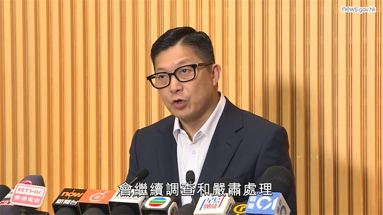 政務司司長陳國基聯(lián)同保安局局長鄧炳強、廉政專員胡英明和警務處刑事及保安處處長陳東,在政府總部就大埔宏福苑五級火警事宜會見傳媒,披露調查和跟進工作最新進展。當局公布,在宏福苑不同位置採集的棚網樣本中有7個未達阻燃測試標準,初步相信火警涉及使用不合規(guī)棚網。陳國基嚴厲譴責有人為圖小利,將合規(guī)與不合規(guī)棚網混合使用,行為極其可恥,最終釀成重大傷亡。目前,警方已以誤殺罪拘捕13人,不排除後續(xù)有更多人被捕。